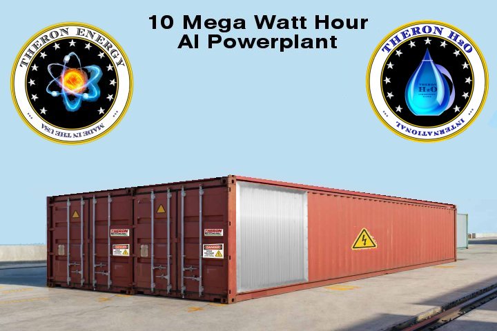 This Theron ATMAG® GENSETS 10 Mega Watt or 10,000kW or 13,410 mechanical horsepower Permanent Industrial Silent AI Data Center Magnetic Energy Generator, including Atmospheric Water Generators 8,000 Liters/Day with Reverse Osmosis filters, is ideal for large industrial Data Center and AI Artificial Intelligence applications. These generators run quietly and have zero emissions because they are perpetual energy generators and do not require a fuel source or energy source to operate. Installation is easy because you do not need to connect to a diesel or propane tank and once you have connected the harness to your electrical distribution point, you can turn off your utility company supply for good.